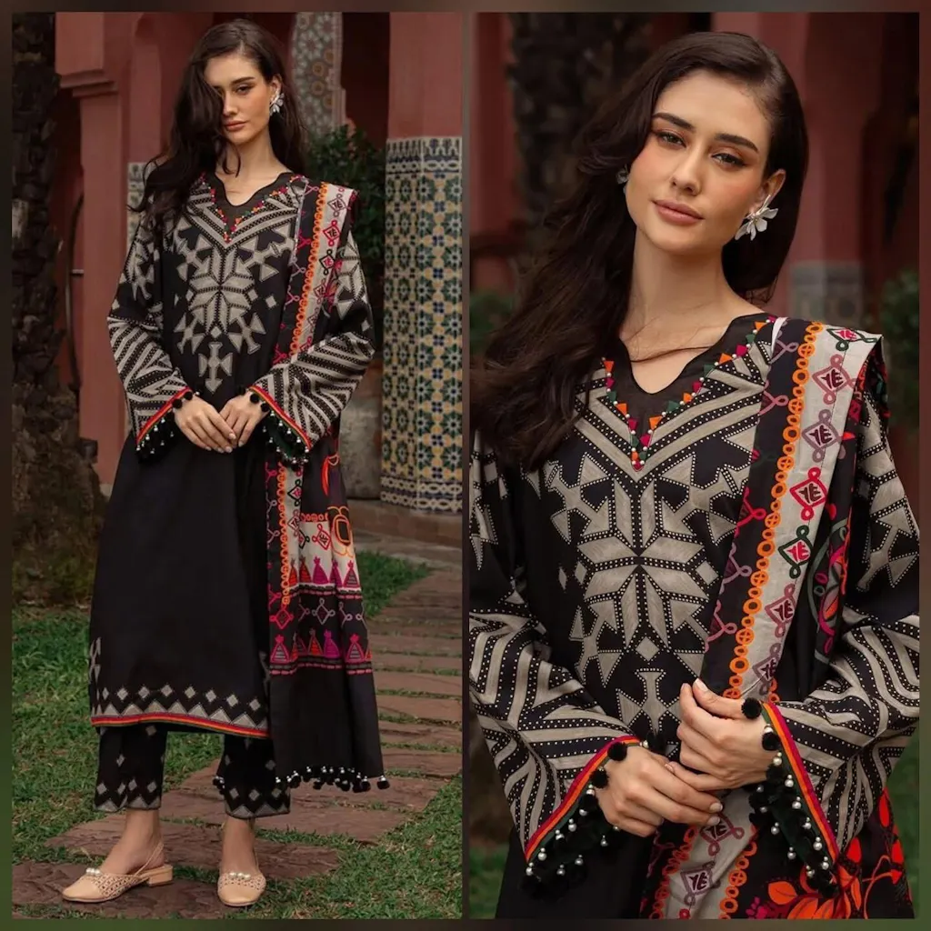 3 Piece Unstitched Heavy Embroidered Dhanak Suit ( Four-sided Embroidered Dhanak Shawl )