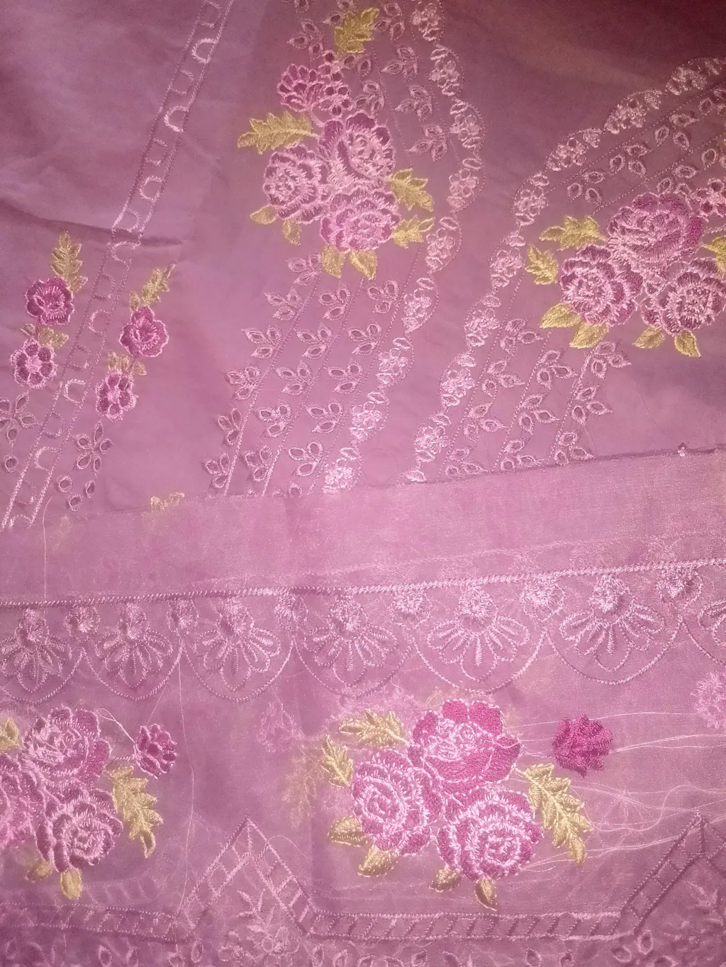 3 Piece Unstitched Heavy Embroidered Lawn Suit ( Fine Printed Silk Dupatta )